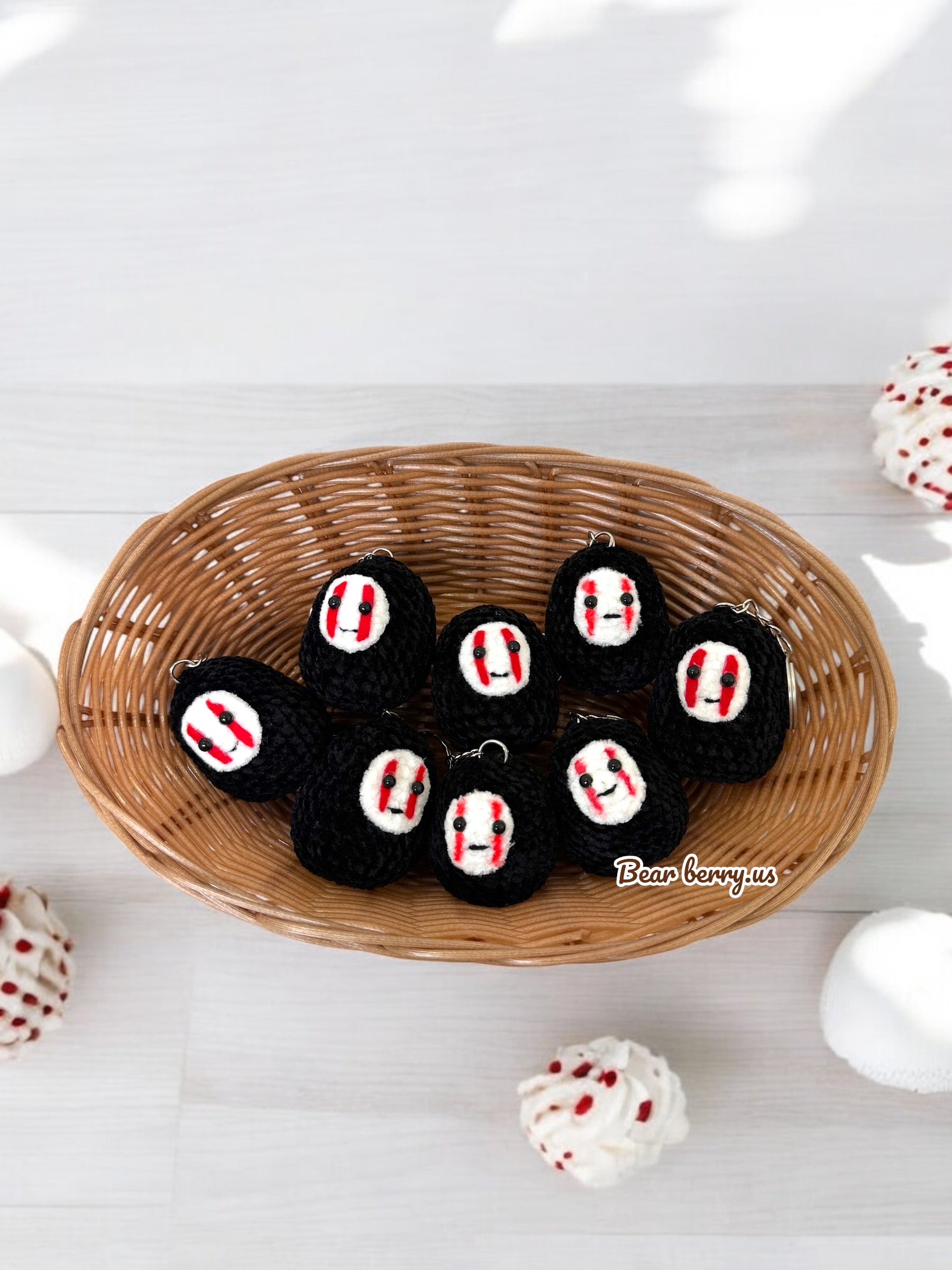 A detailed crochet keychain inspired by the iconic No-Face character. Its minimalist design captures the essence of the mysterious spirit, making it a perfect collectible for fans.