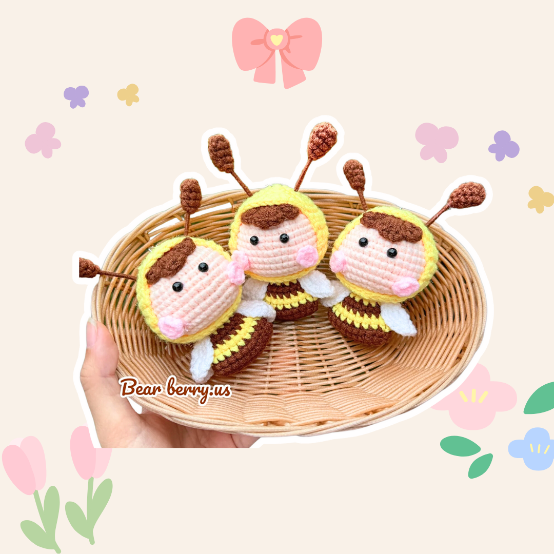 This adorable crochet keychain set features little bees dressed up with cute expressions and antennae, perfect for adding a playful, cheerful vibe to your keys or bag.