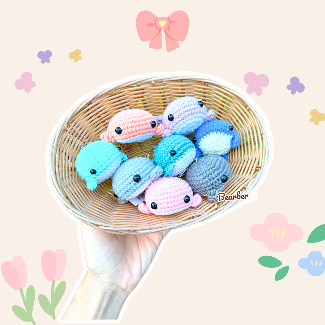 This adorable crochet whale keychain comes in a variety of pastel colors, featuring a sweet smile and tiny fins. It’s a charming accessory for ocean lovers to add to their keys or bag!